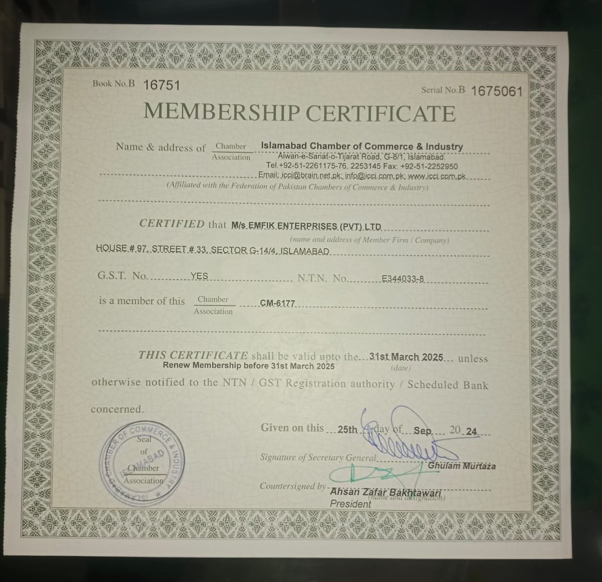 At EMFIK, we are a trusted name in the import and export industry, backed by our membership in the Chamber of Commerce, SECP registration, official company registration, FBR certification, and a certified bank account. These credentials reflect our commitment to professionalism, transparency, and reliability.